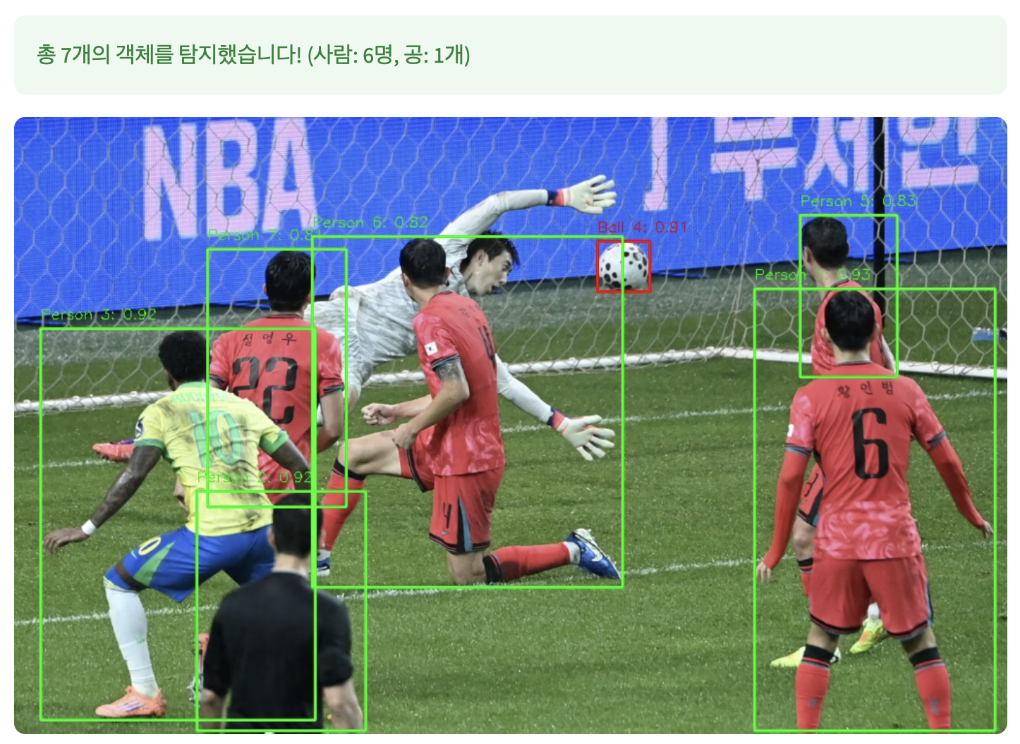 # 선수(사람) (클래스 ID: 0) 또는 공 (클래스 ID: 32 - sports ball) if (cls_id == 0 or cls_id == 32) and conf > 0.5: object_type = "person" if cls_id == 0 else "ball"